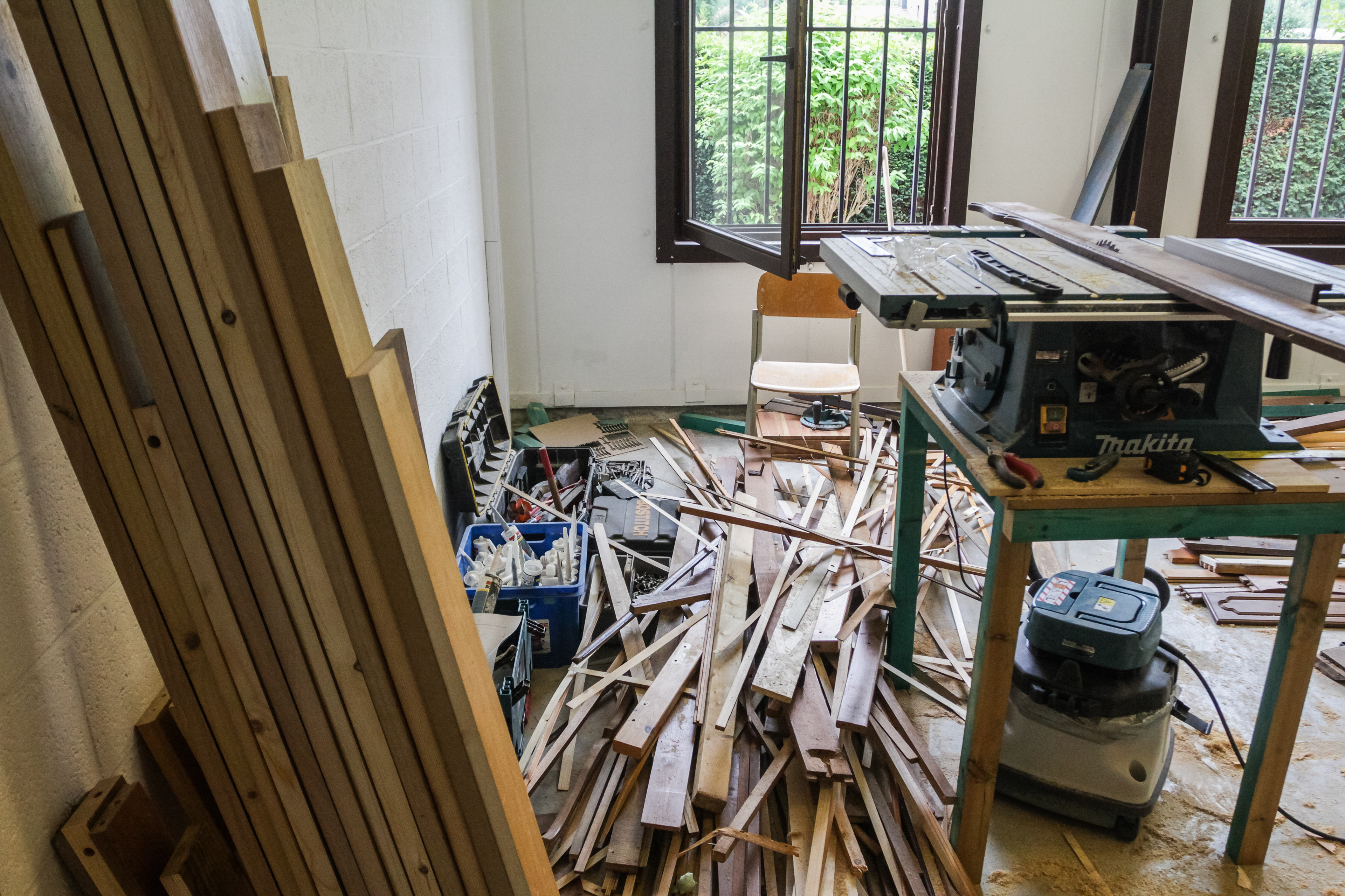 Materials: Wood scraps and recycled materials Processes: Furniture disassembly and re-cutting, manual woodworking, sanding, linseed oil protection Dimensions: 8 m × 3 m | Composition: 163 planks — 236 m of wood Client: YourLab